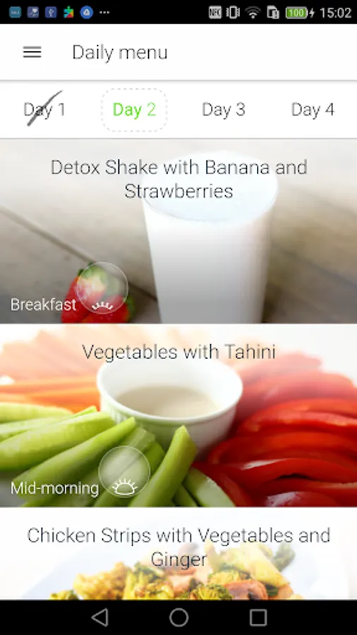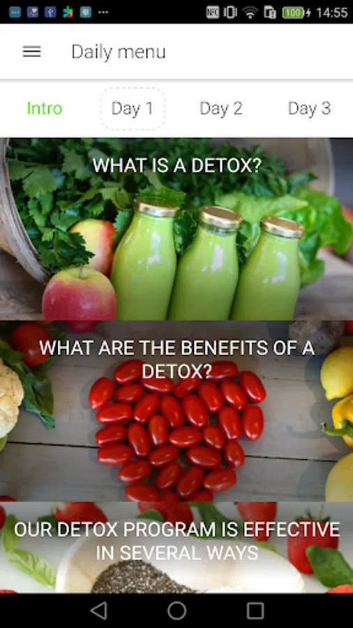 This new up to date version of the application presents a new design, includes 4 different 21 days menus, is faster and works better for all devices, a new design of the menus with a possibility to mark your preparation stage, a possibility to increase and decrease the text size, an easy transition between the menus and a convenient navigation.