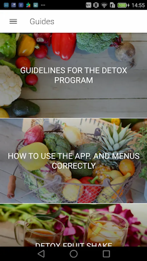 Our successful detox program, used by people around the world, now in a new up to date version, that includes 4 different 21 days menus. You can choose the program that fits your nutrition preferability: Regular Menu, Pescatarian - Vegetarian Menu including fish, Vegetarian Menu and Vegan Menu.