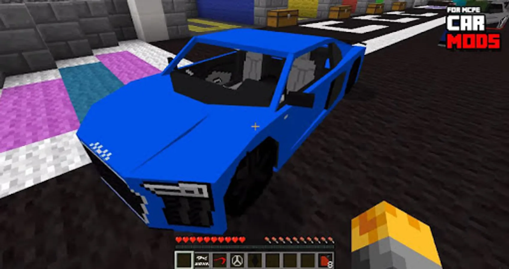Car Mods for Minecraft MCPE PE (Pocket Edition) allows you to fun with powerful over 120 new vehicles and 20 models to Minecraft and awesome vehicles such as Lamborghini, Ferrari, Audi, Skyline GTR. Don’t forget that you can always swap cars. All of all super customization, they are more than thousand of customization combinations in some cars. Running a car from a cliff breaks the engine and the car will explode, it also has the minecraft car mod less prone to damage so if someone tries to kill your car they can’t attack it.