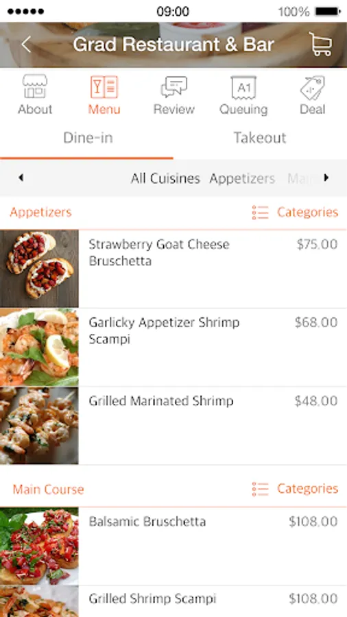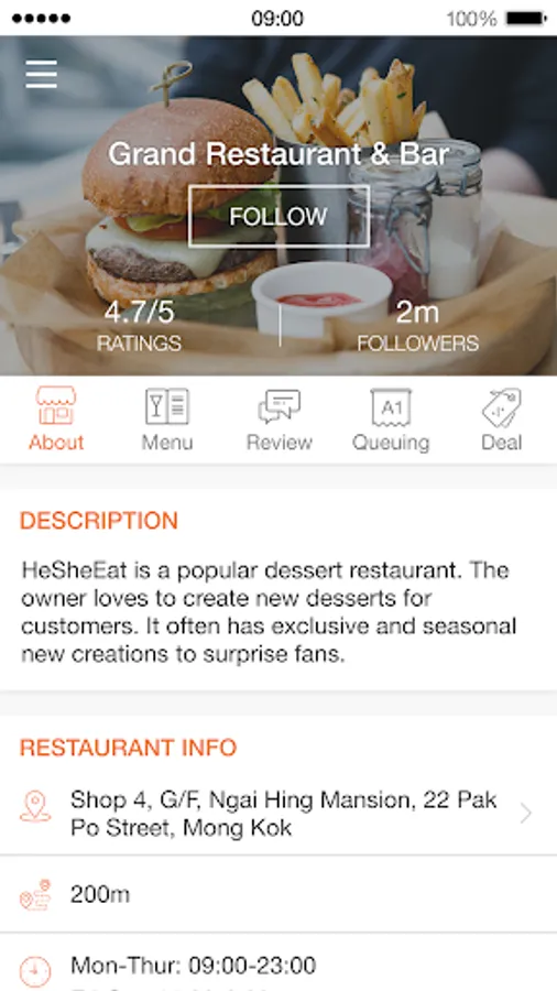 - Queuing: Advance queuing. Get your Queue Ticket in advance, view the restaurant menu and add your selections to your cart while you wait, then get notified when the table is almost ready.