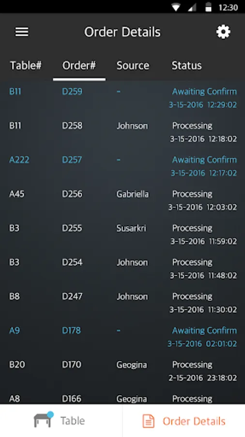 Waiter App Features: