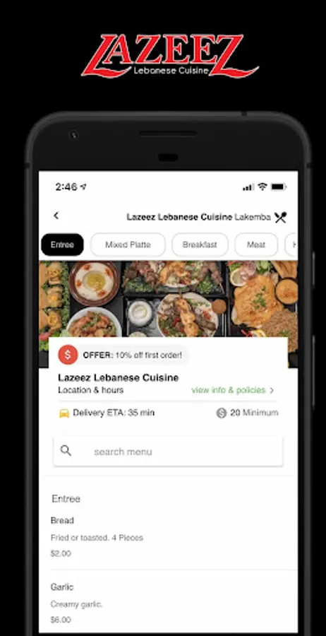Pre-order your food and drinks with our Lazeez Lebanese Cuisine App and pay using Cash, Loyalty or Credit Card.