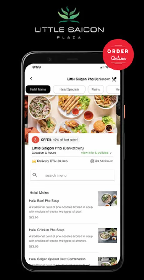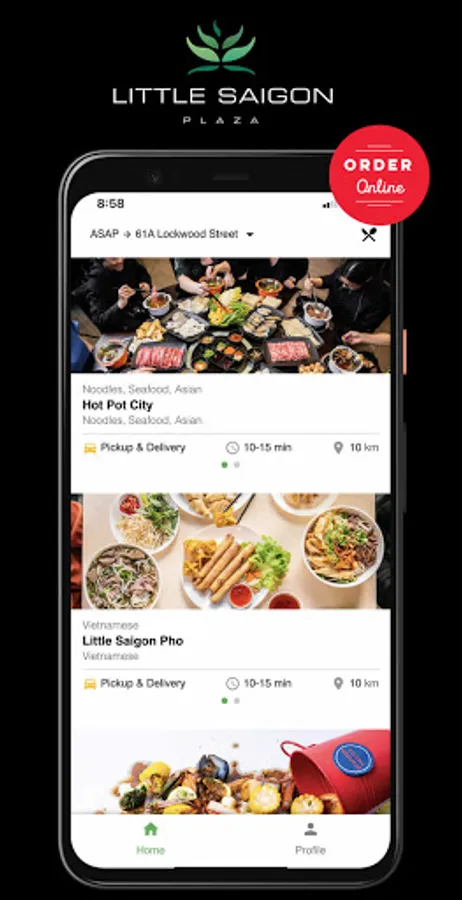 Download our Little Saigon Plaza app and order directly from restaurants. Order ahead for pick up or delivery. Pre-order is also available.