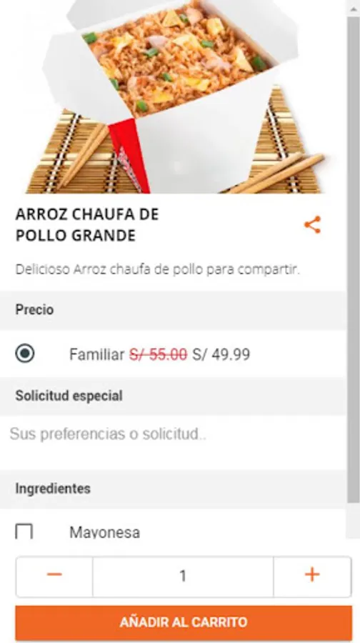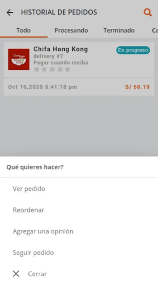 When you place your order, you will see the address, the estimated delivery time, the total price with taxes and the shipping cost included. You can pay in cash, POS, Yape, plin or add a credit card easily with the touch of a button. Follow your order and enjoy.