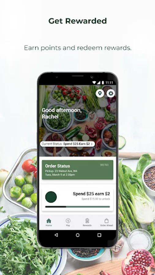 • Receive points – Receive points ($1 = 5 points) by placing orders using your app