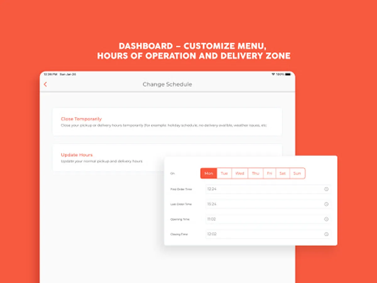 EATTE Dashboard App to manage Locations, Orders, Menus and Working Hours.