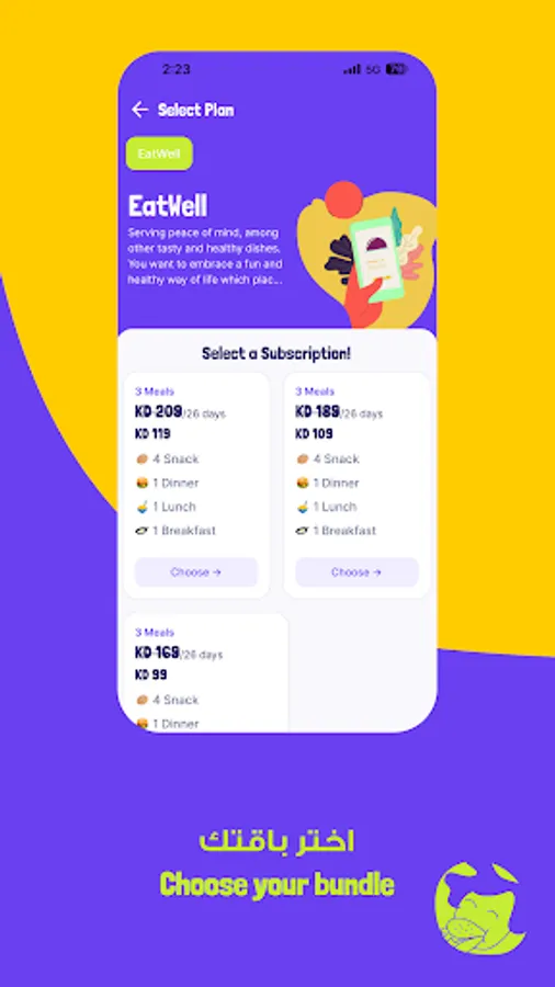 EatWell provides Healthy, Delicious, Great Value meal subscription plans which include Breakfast, Lunch, Dinner, and 4 snacks.