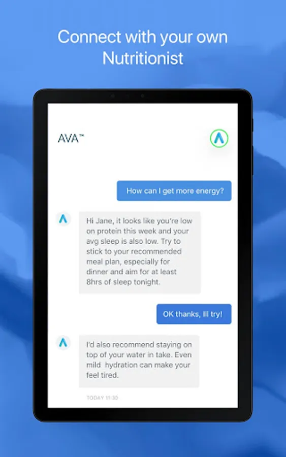 AVA provides you with quick personal nutrition recommendations in order to reach and maintain lifestyle goals.