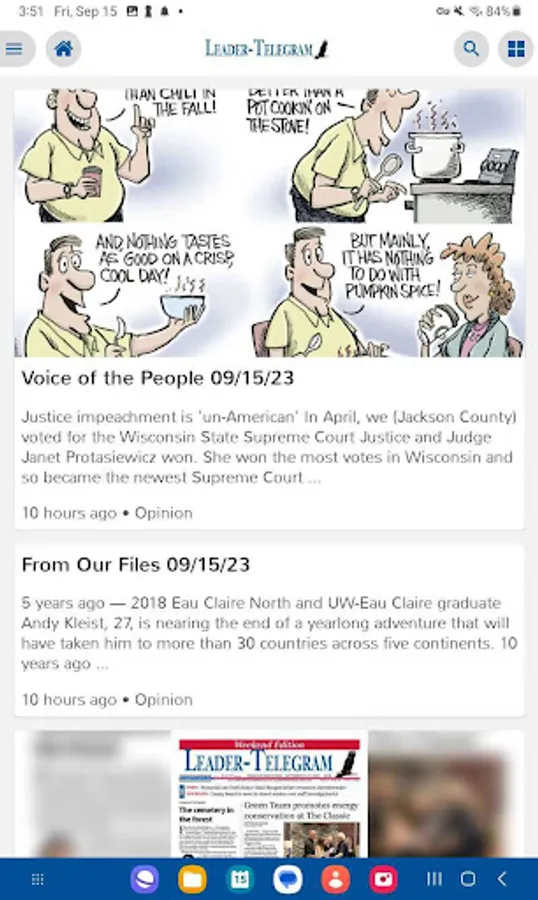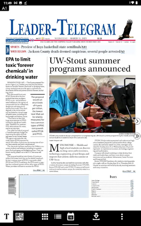 Leader Telegram now includes both LIVE NEWS and the replica edition of your local newspaper. This is a digital replica of the printed Leader-Telegram. This app is part of your all access membership. If you have questions about using the app please contact us at print.subscriptions@ecpc.com or call 715-339-3036, press #1