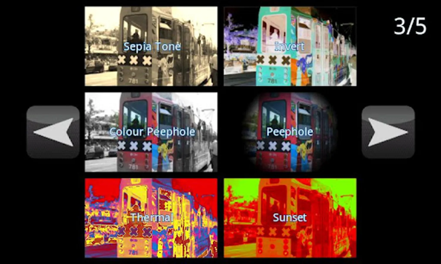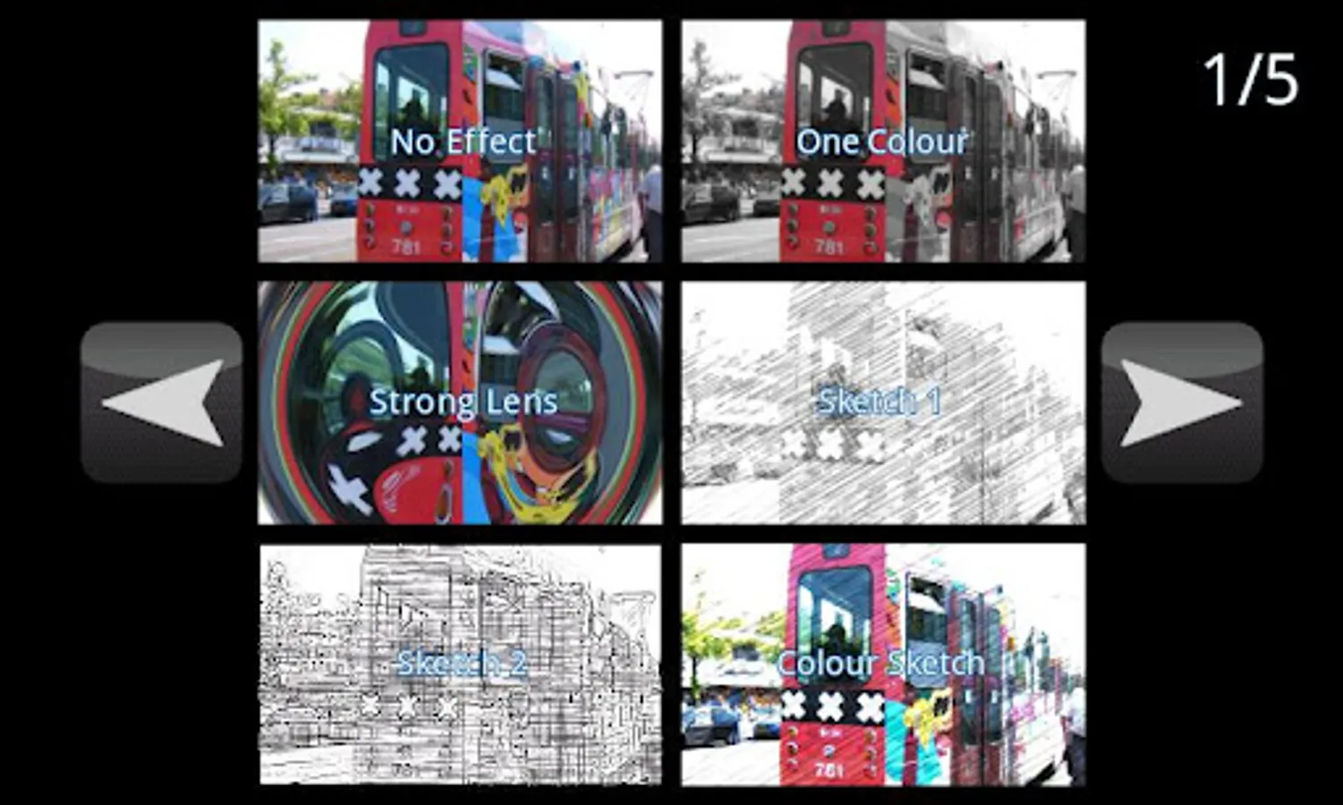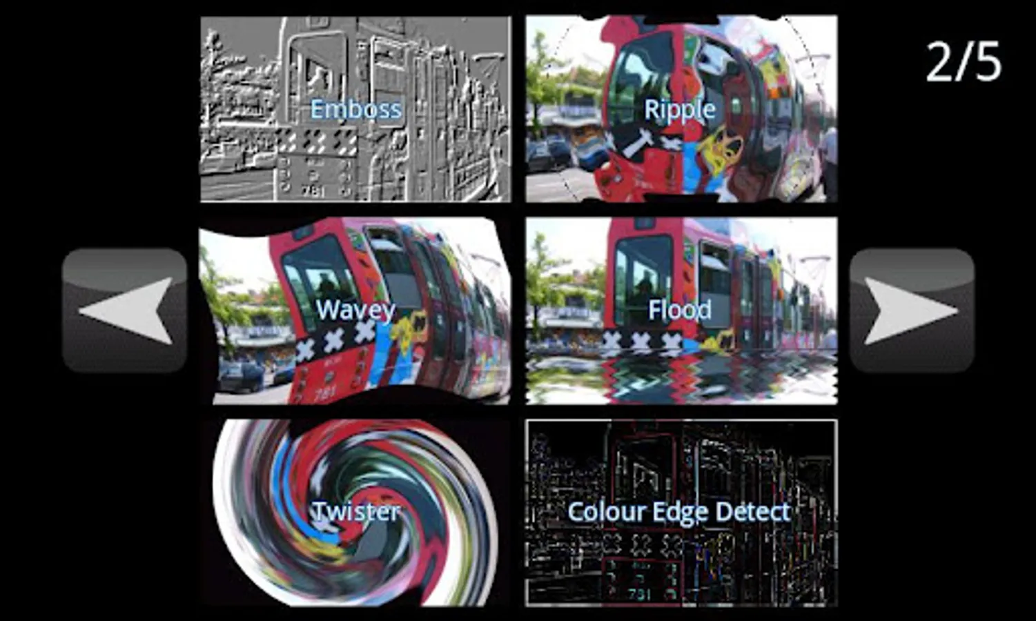 The ultimate camera effects application, 30 free live camera effect filters, apply sketch, colour, mirror and distortion effects in real time with a live preview!