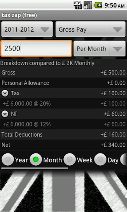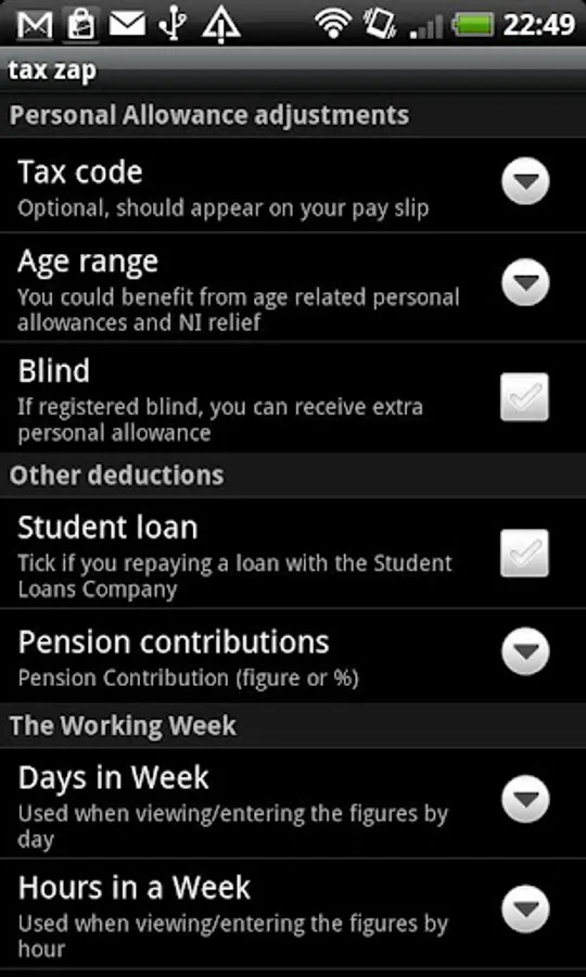 In addition to being a highly accurate UK PAYE tax calculator, this is the only app on the market that lets you work backwards from any figure (tax/ni/student loan etc) to find the gross and give a complete breakdown.