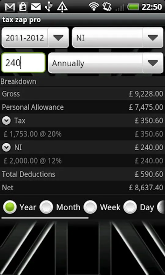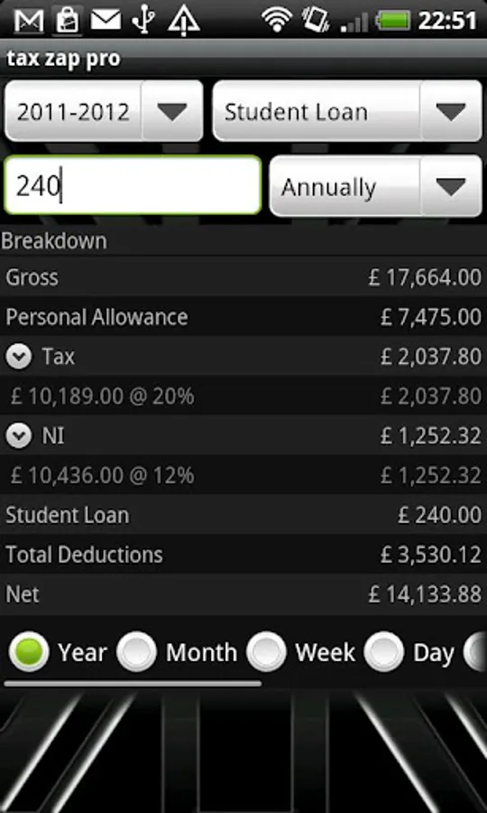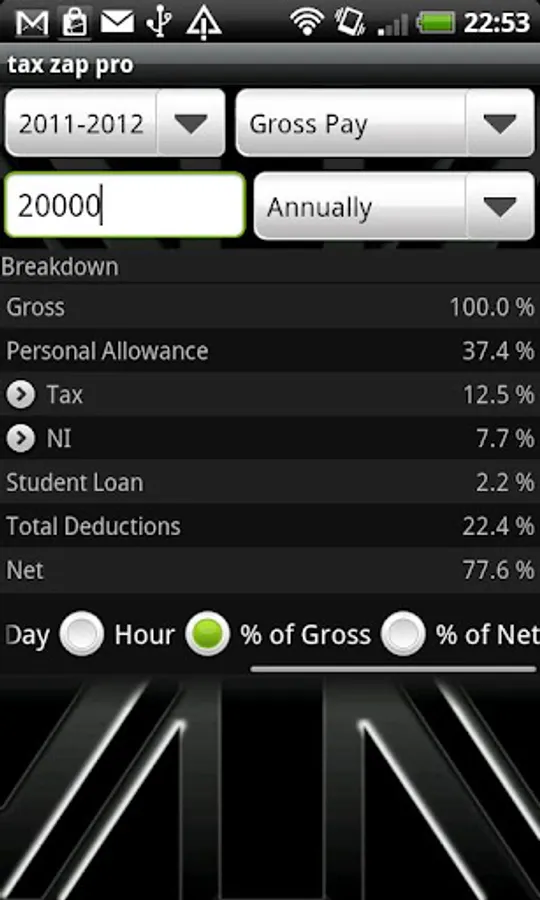 In addition to being a highly accurate UK PAYE tax calculator, this is the only app on the market that lets you work backwards from any figure (tax/ni/student loan etc) to find the gross and give a complete breakdown.
