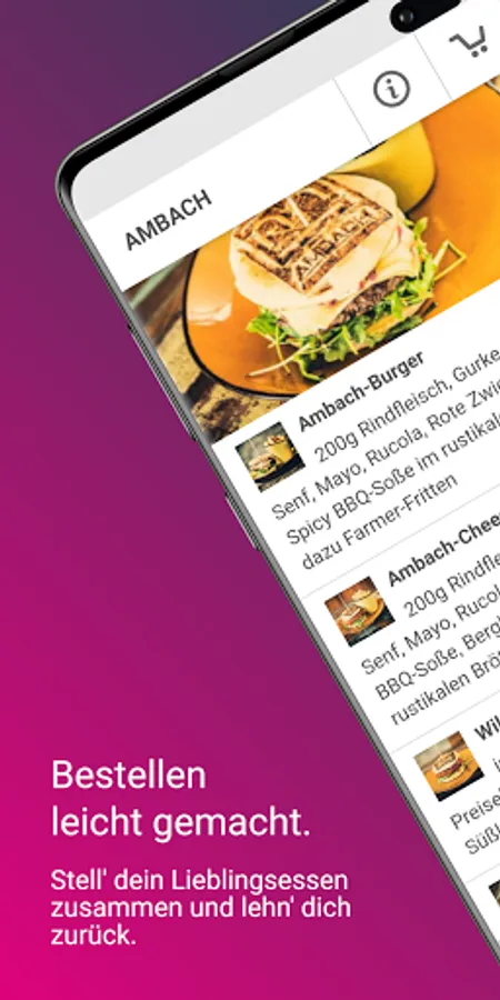 Your AMBACH app! Order smart and enjoy. With the AMBACH app you now have the AMBACH in your hand. More choice, simple operation - just order legger food to be delivered or picked up - or reserve a table and enjoy the evening with us. We are constantly adding new features. With the AMBACH app, you will soon no longer miss an event, and you will be able to get hold of rewards and other nice things.