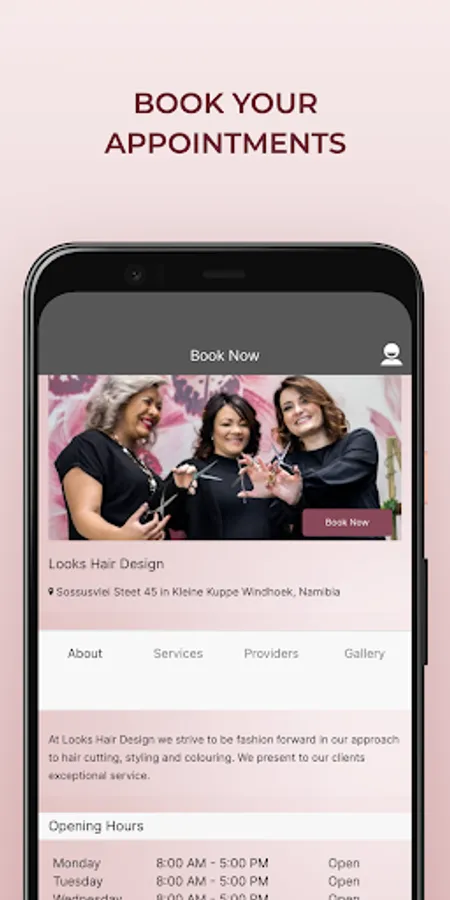 Looks Hair Design CC is in 45 Sossusvlei Street Kleine Kuppe en has been open since 2011. Our Hairdressers have many years experience and our salon is always fully stocked and has a modern look. We stock world class brands and focus on customer satisfaction first. We look forward to seeing you soon...