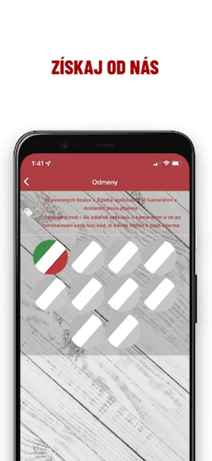 With our application, you can order it easily and quickly via your mobile phone, whether you want to take the pizza home or pick it up at the store. Get tasty rewards for sharing with your friends and thanks to notifications, you'll never miss the latest information and promotions!