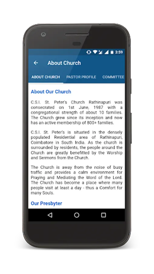 The Church functions in its own new building which was dedicated on 13th December 2014 with a seating capacity of about 700 people. The Believers and the Pastoral Committee together work for the church in the day-to-day activities and also, Our Church always leads in initiating new Missions and Programmes which could help the believers to grow in faith.