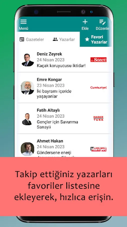 - You can edit the newspaper list according to your wishes. You can remove the newspapers you do not want to follow from the list. You can change the newspaper order as you wish.