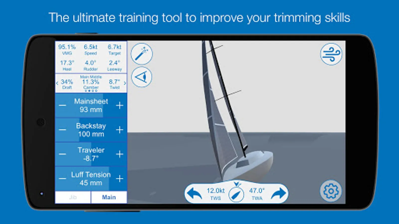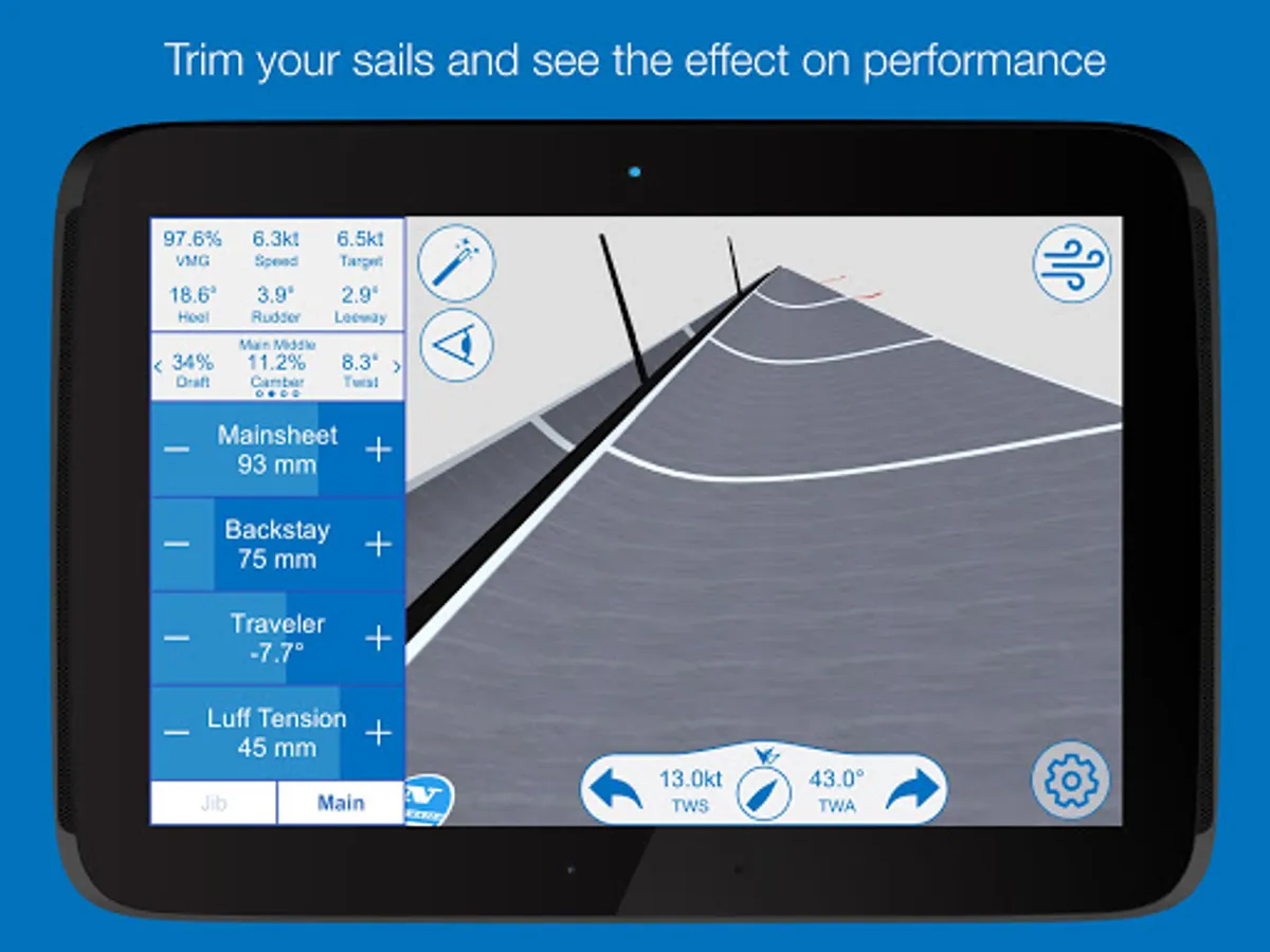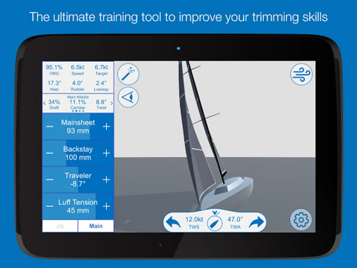 The North U UPWIND SAIL TRIM Simulator is a training tool to help you develop your sail trim skills. Leveraging data from the North Sails Design Suite, the North U UPWIND SAIL TRIM Simulator provides a full array of sail trim controls for mainsail (Mainsheet, traveler, backstay, halyard) and jib trim (jib sheet, jib lead, backstay, halyard). In the app you can set wind speed and adjust trim to optimize performance and change views to any position on or off the boat. Currently using a J35, additional designs will be added over time.