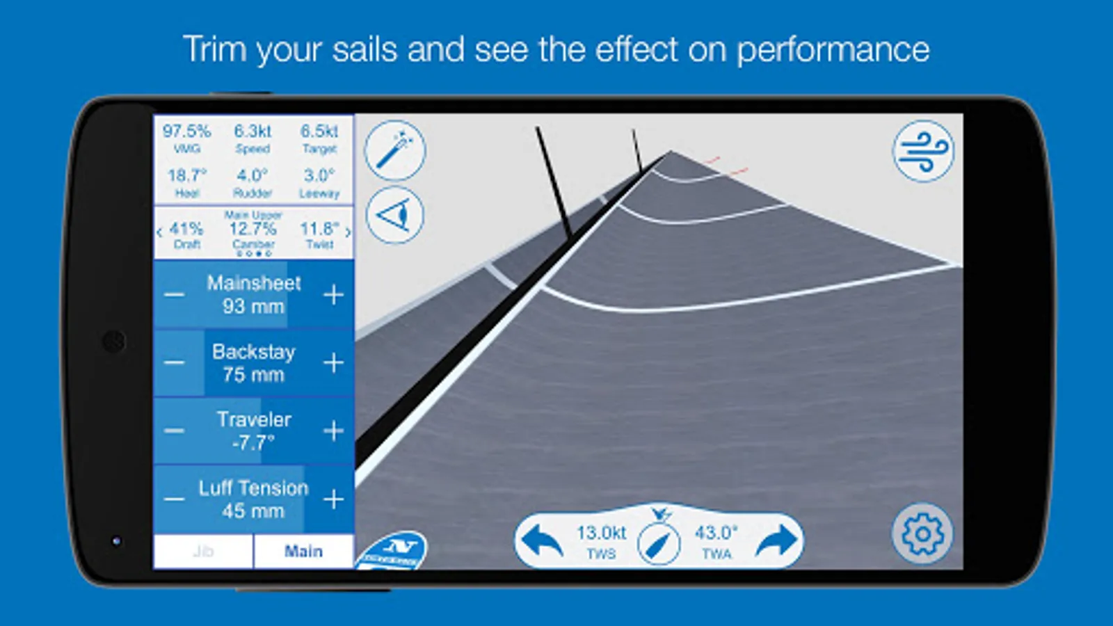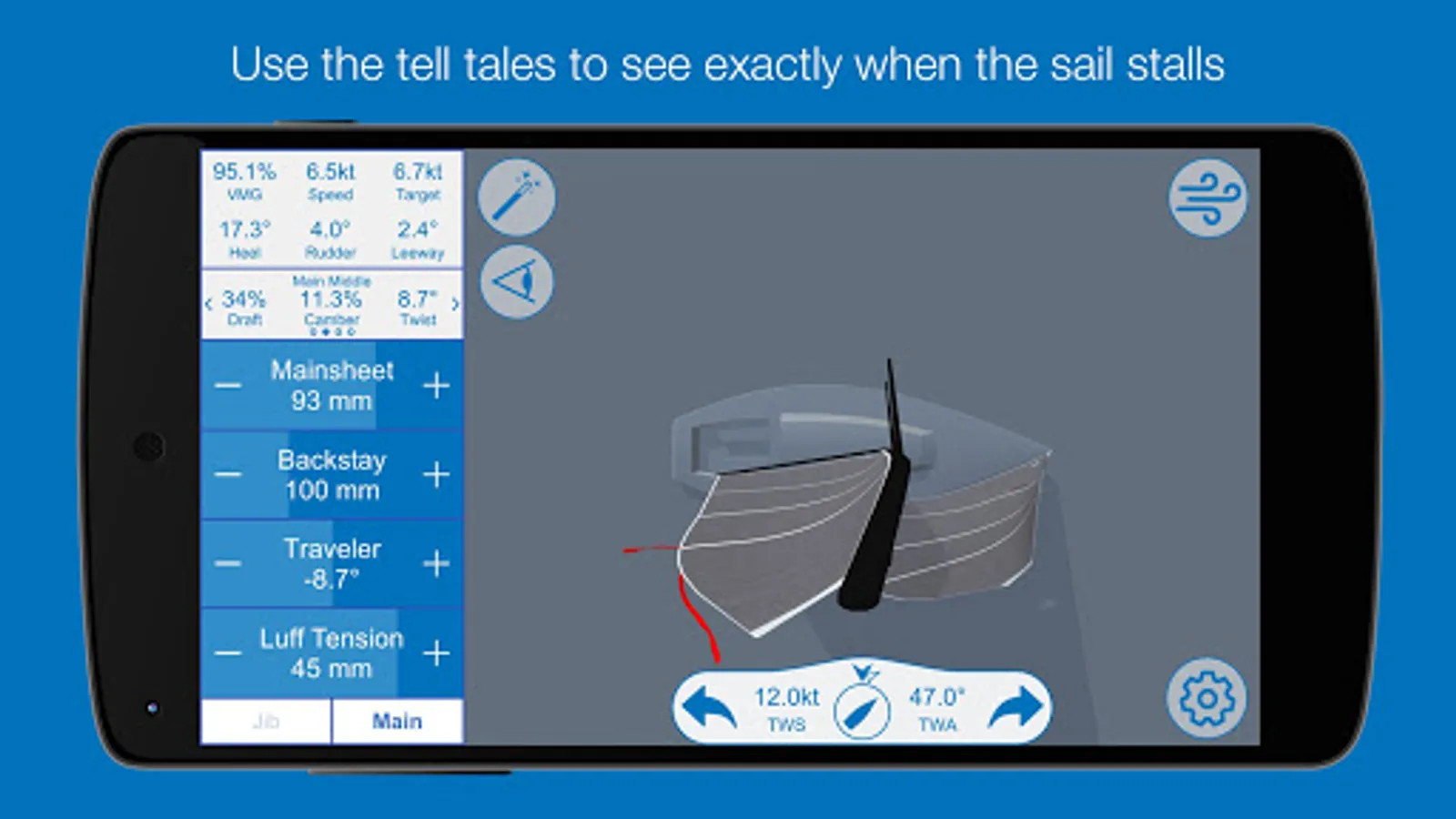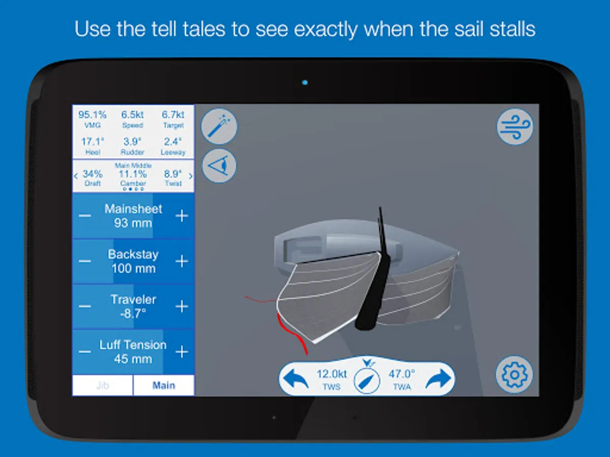 The North U UPWIND SAIL TRIM Simulator is a training tool to help you develop your sail trim skills. Leveraging data from the North Sails Design Suite, the North U UPWIND SAIL TRIM Simulator provides a full array of sail trim controls for mainsail (Mainsheet, traveler, backstay, halyard) and jib trim (jib sheet, jib lead, backstay, halyard). In the app you can set wind speed and adjust trim to optimize performance and change views to any position on or off the boat. Currently using a J35, additional designs will be added over time.