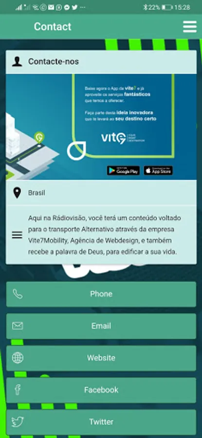 We are a Radio focused on entertainment and dissemination of the works of the Urban Mobility Application, Vite7Mobility. You will have a quality service with this company, which is already active throughout the Brazilian territory. And you will also be in tune with our programming focused on the word of God and many praises daily. We also have all the work related to services on the web, through partner companies.