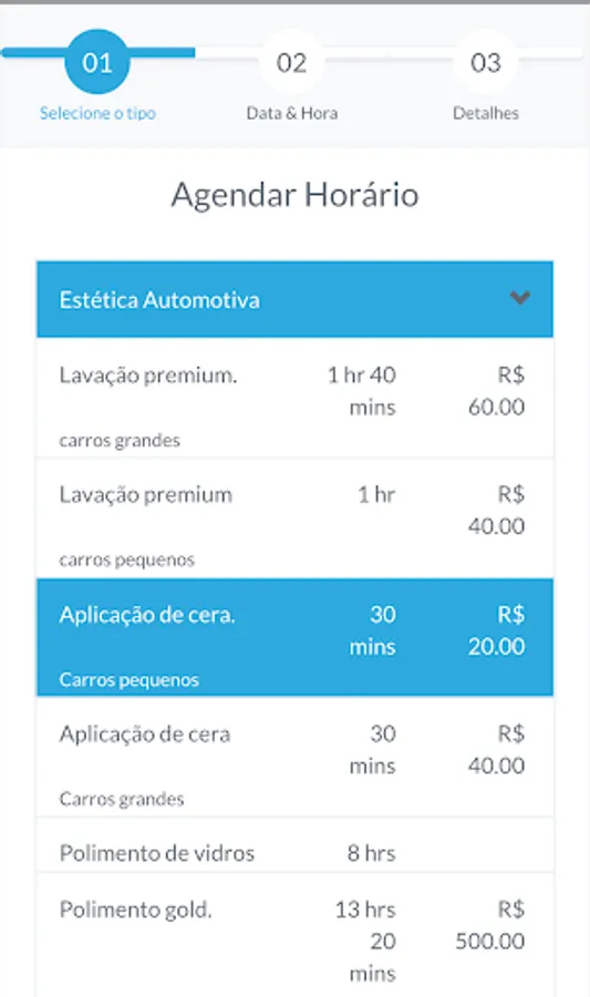 Automotive Aesthetics, cafeteria, leisure. Download our App and streamline your service, you can schedule your time and hire services, it's quick and easy!