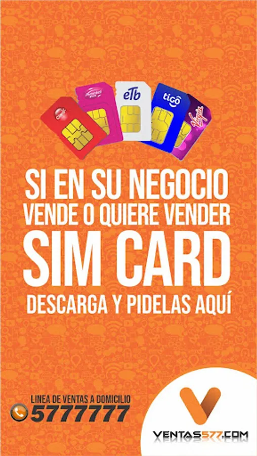 We distribute Sim Card Claro, ETB, Avantel, Virgin and Tigo in Colombia at home for sale to final customers.