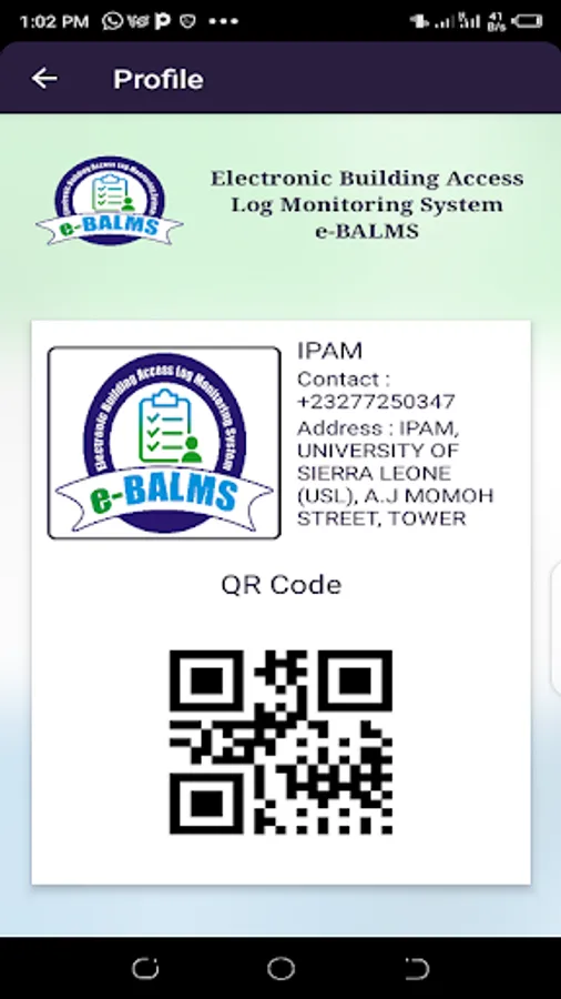 Niche Technologies Sierra Leone Limited built the Electronic Building Access Log Monitoring System (e-BALMS) app as a Free app.