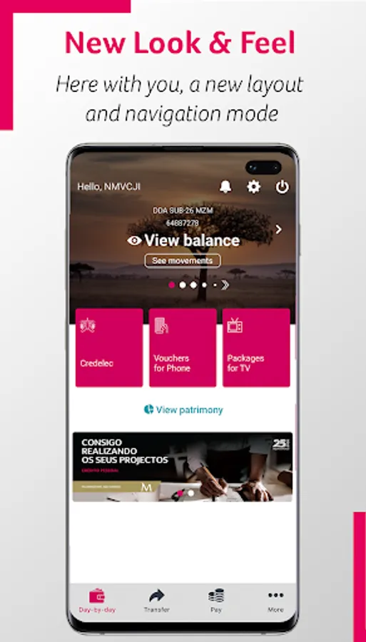 The new Smart IZI layout offers you a different navigation mode from the previous one. Now, after logging in, you can slide to the left or right on the products carousel and have an overview of all your products: accounts, cards, savings and loans. To make it even easier to navigate through the App, the new version of Smart IZI has a fixed navigation bar at the bottom of the screen where you can quickly access to "day-by-day", "transfer", " pay" and "more".