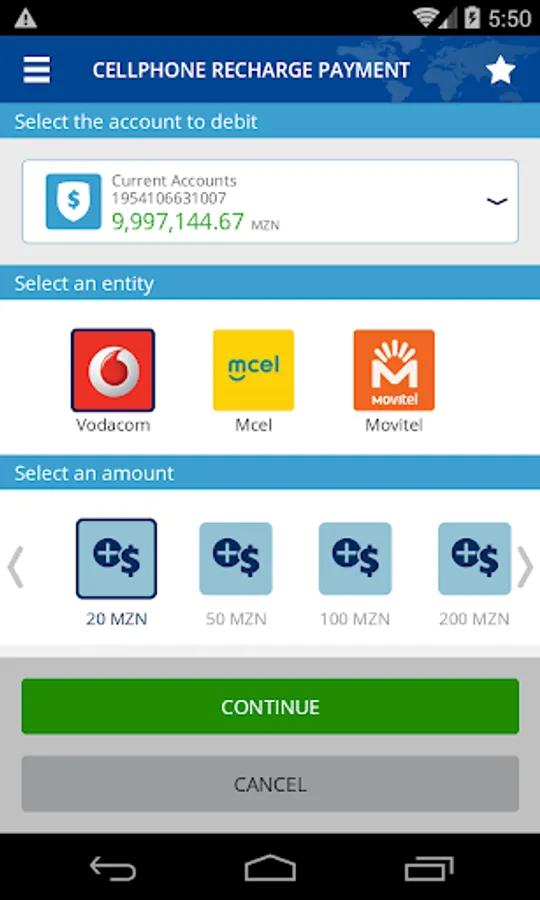 New features will be gradually incorporated. We count with your contribution to improve this product. If you have any suggestions or comments please contact us by email linhadocliente@standardbank.co.mz or by phone 800 412 412 / (+258) 21329777.
