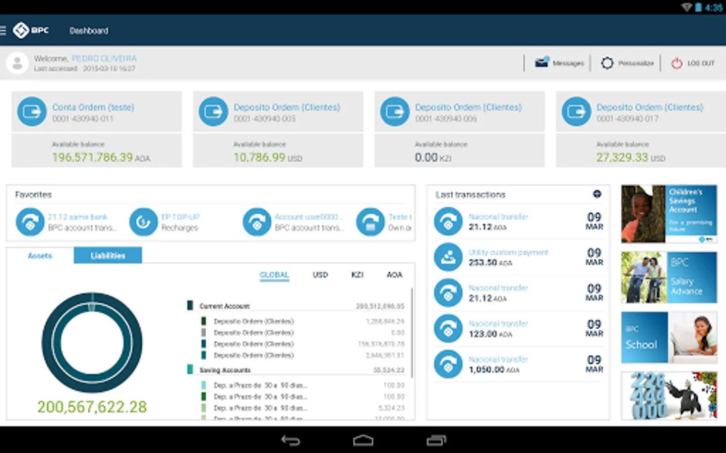 • View current accounts, savings accounts, loans, debit cards and checks details