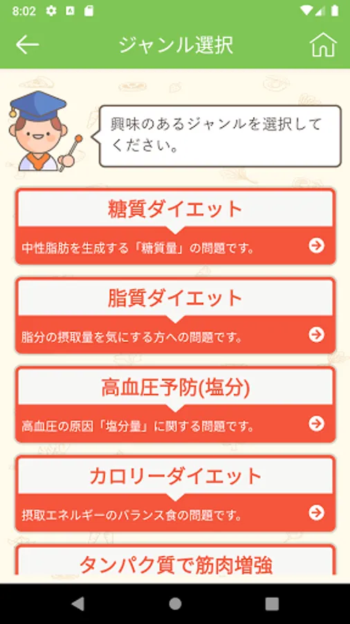 It is a health quiz app that supports various eating habits. Included in foods that have a significant impact on health