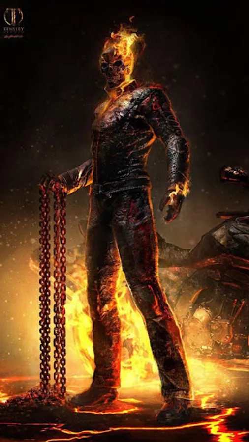 Nicolas Cage as Johnny Blaze / Ghost Rider: A motorcycle stuntman, who is tricked into making a deal with the demon lord Mephisto thinking that it will save his father from dying, and is subsequently bound to an ancient demon, transformed into a supernatural, fiery, skeletal, monstrous soul hunter, the Ghost Rider. As his work for Mephisto continues, he hunts down the demons which have escaped from Hell (a.k.a. Hate or Hades).