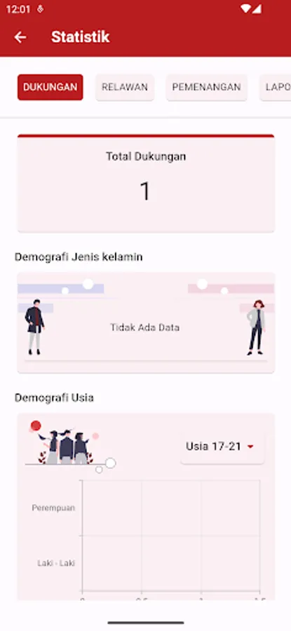 The statistics feature in Galang Suara gives users access to the latest data and information about general elections. Users can view voter statistics, turnout rates, and election results from various regions. These features help users understand trends, patterns, and impact of elections, and inform strategies and better decisions.
