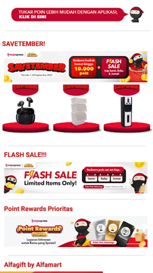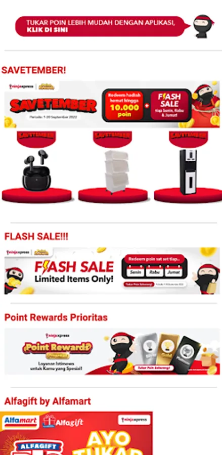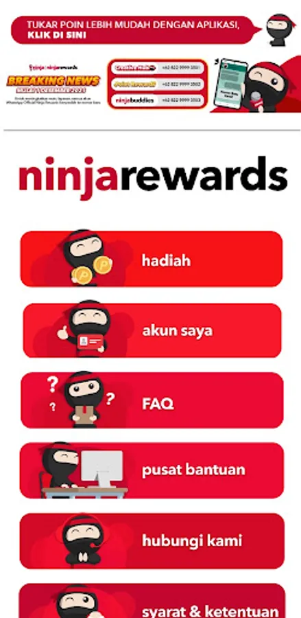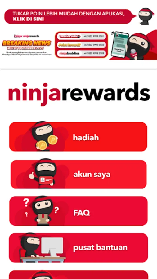 Ninja Point Rewards is a membership application for loyal Ninja Xpress users that provides many benefits in the form of points that can be exchanged for various attractive prizes.