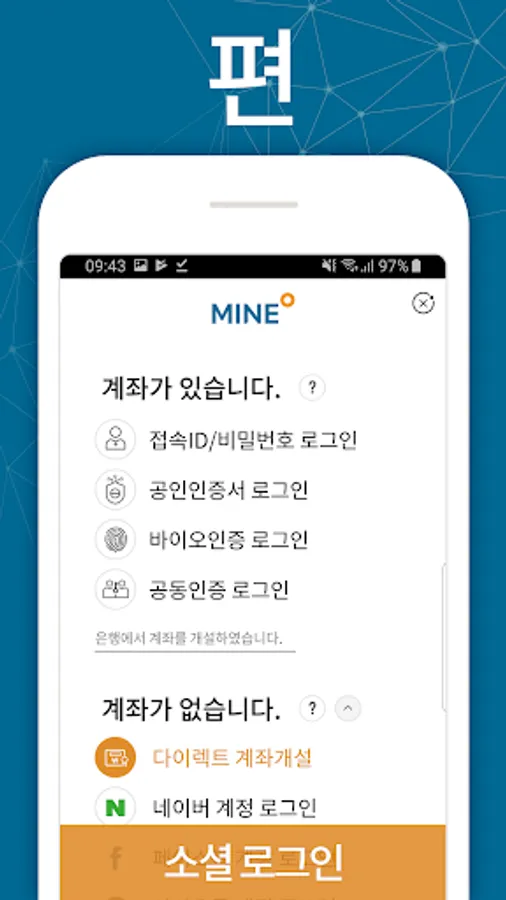 ※ You can use the MINE service even if you do not agree to allow the optional access rights, but you may have restrictions on the use of some necessary functions, and you can change it in the [Smartphone Settings> Application> E-vest Mine> Permissions] menu. .
