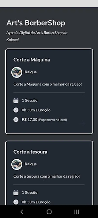 Barbershop with a history, Art's BarberShop whose professional is Kaique Freitas, in addition to being able to schedule, you will have access to your loyalty card digitally, where at each end of service this card will be filled in with a password entered by the barbershop employee, We will always have new promotions and loyalty cards, you will be notified with each new barbershop promotion!