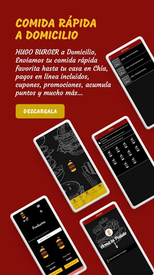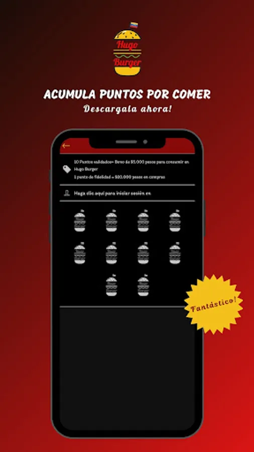 Create your profile, and start enjoying our menu and earning for preferring us. We invite you to rate our platform and enjoy everything we have at Hugo Burger for you!