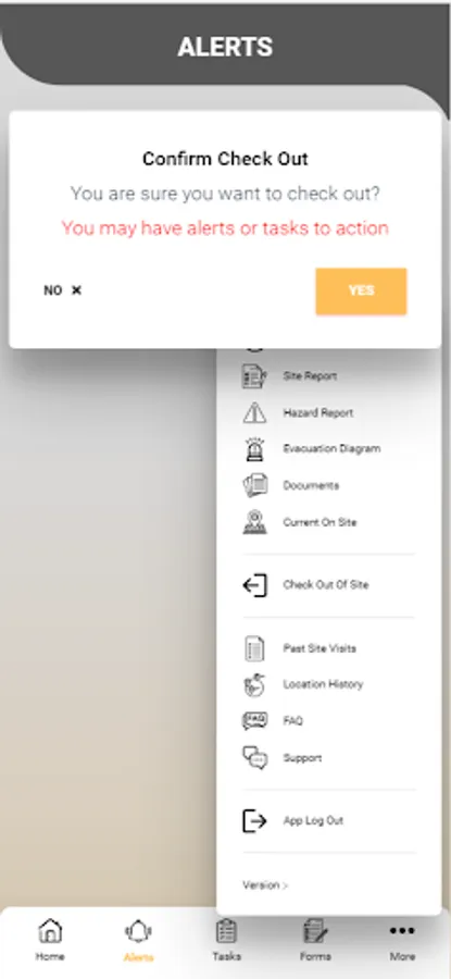 Once the user signs into a site, the user is able to read any alerts, notification and advise for all visitors. The user is also able to complete set task by the site, their own company, provide Site and safety report and any form that they have been assigned.