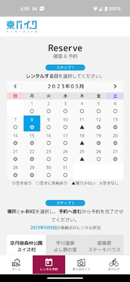 Please find a base to be used and reserve an e-BIKE.