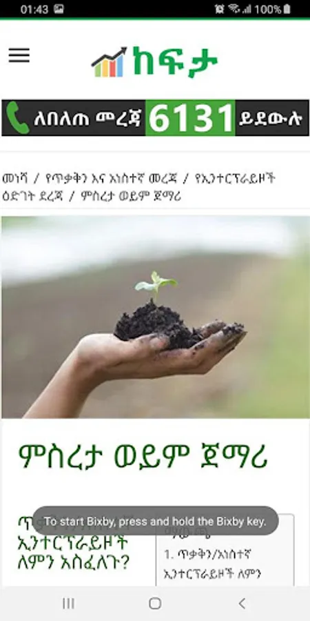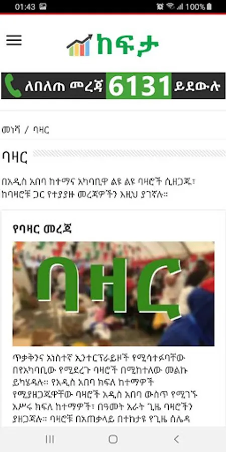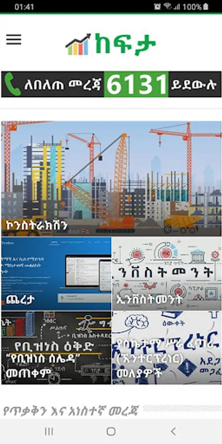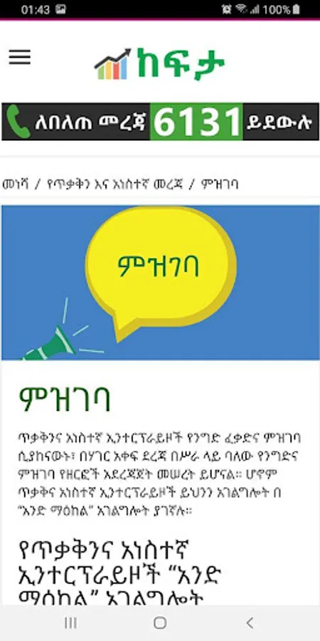 "ከፍታ" በተለይ ለጥቃቅንና አነስተኛ ኢንተርፕራይዞች የተሟላ መረጃ ለመስጠትና ኢንተርፕራይዞቹን ከፍ ወዳለ ደረጃ እንዲደርሱ ለማገዝ የተዘጋጀ ድረ ገጽ ነው። ኢንተርፕራይዝ ከማቋቋም አንስቶ፣ ማስተዳደር፣ ማሳደግና ሌሎች ተያያዥ ጉዳዮችን የተመለከቱ ጉዳዮችን ይዳስሳል። የገበያ ትስስር ጥቆማዎችን በማድረግ የቢዝነስ ዕድሎች እንዲሰፉ ያመቻቻል። የግብር፣ የዕድገት፣ የልምድ ልውውጥ ምክሮችን ይዟል። የጨረታ፣ የኮንስትራክሽን ገበያ ሁኔታና ዋጋዎችን መረጃም ይሰጣል።