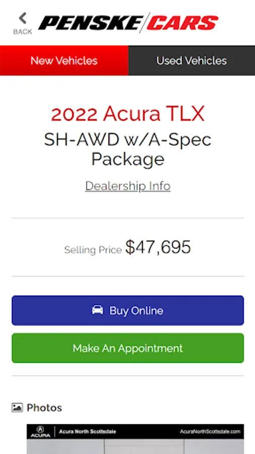 Found the vehicle you like to buy? Use the app to scroll through detailed photos, view individual vehicle options and features, review CARFAX reports, and calculate your monthly payments. Call or email the dealer directly from the app to schedule a test drive.
