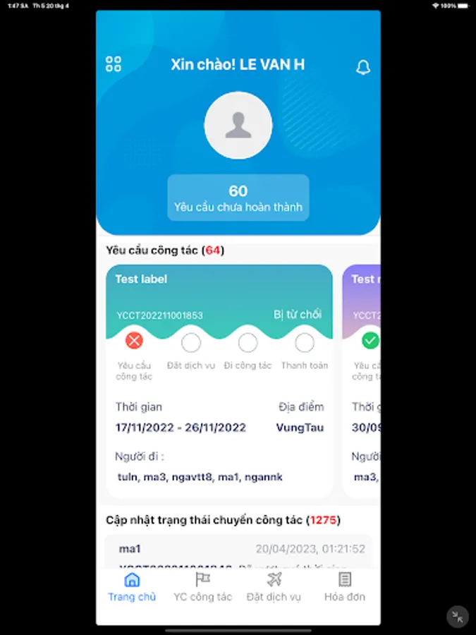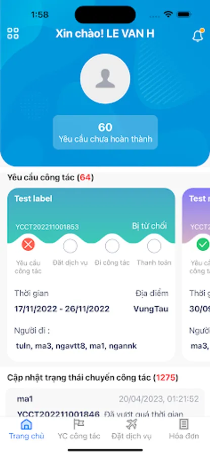 Hệ thống cho phép khai báo thông tin các chuyến công tác, quản lý lịch công tác cá nhân, xem các dịch vụ đặt chỗ ở khu vực đi công tác...