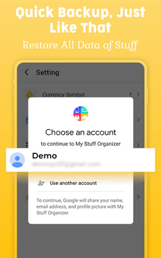 In this Home Inventory Tracker App, take quick backup of your stuff with 'Backup Data' option in the Navigation Drawer! So, whenever you change the device, just login to your account & Restore it!