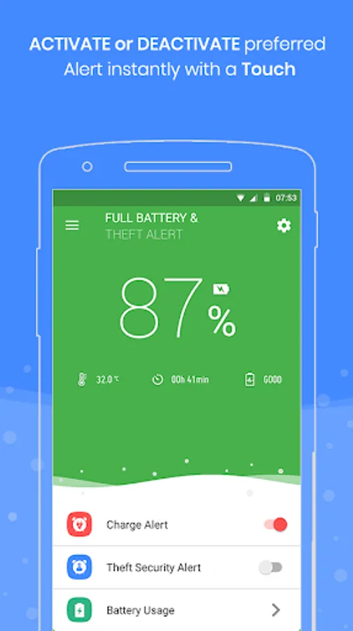 Just Plug-in Charger and your favorite app is all ready to notify you with alarms and improve your mobile phone’s battery life for a long.