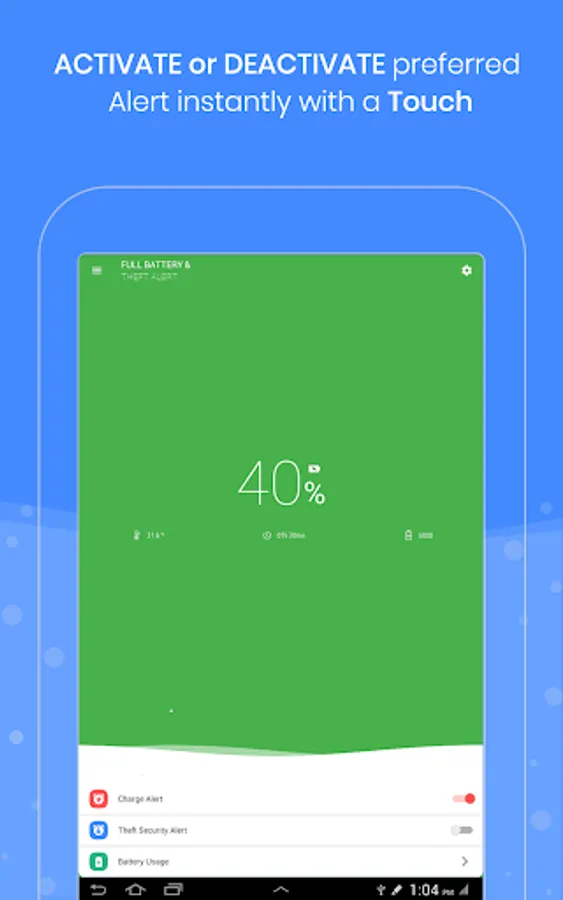 Get a theft alert alarm when someone tries to discharge your mobile from charging without your permission.