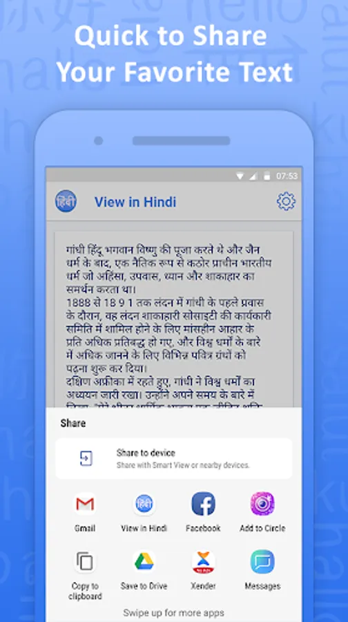 Once you see text in Hindi, you can send the message via other apps such as SMS, Gmail, Twitter, Facebook, Google Docs, WhatsApp Messenger and so on. These apps may show boxes but don't worry, your recipient should able to see it.