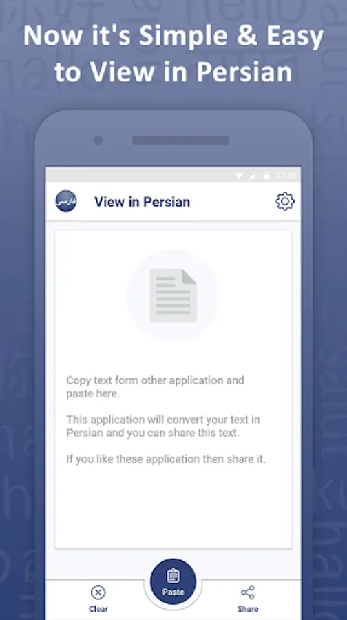 In some phones like Nexus 4, Nexus 5, Intex, Carbonn, Micromax, HTC and Sony series Persian font is not supporting. So we created this app to help those peoples whose phone does not supports Persian font.