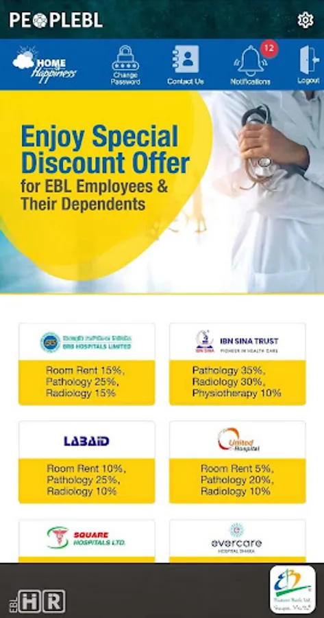 peoplEBL is a mobile-based human resource application for Eastern Bank Ltd Dhaka, Bangladesh employees. Applications in the core suite include personal information, absence and time entry, appraisal history, service requisition hub, emergency contacts, etc. Cloud-based deployment provides EBL employees with remote access, and the platform is designed to work on mobile and desktop devices. The software automatically tracks accrued vacation time and employee absences. It helps employee participation in different employee engagement programs. Requisition hub makes people's life easy, and service is provided faster and easier. Support is provided online and over the phone. The Application Development team of the Information & Communication Technology Division of EBL developed the application, and the Organization Development team of the Human resources Division designed it. The application is an online service provider tool of eblHR.