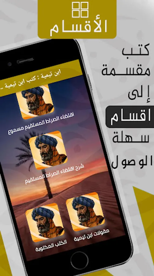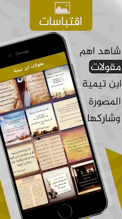 The Ibn Taymiyyah audiobooks application contains a section for Ibn Taymiyyah sayings, where there are images in the form of Ibn Taymiyyah quotes that you can save and share easily..