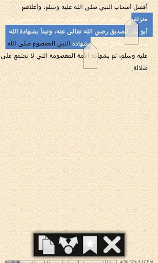 - إمكانية تظليل النص وإضافته للعلامات المرجعية لسهولة الوصول اليه لاحقا